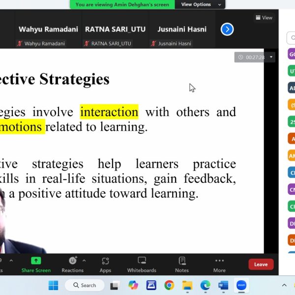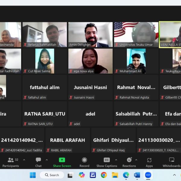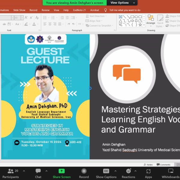 The memorandum of cooperation between Teuku Umar University, Indonesia, and Shahid Sadoughi University of Medical Sciences, Yazd, entered the implementation phase with the invitation of SSU instructors for lectures. On October 15, 2024, a guest lecture was delivered by Dr. Amin Dehghan to more than 30 first-year students of English language studies and faculty members of the English Language and Culture Department at Teuku Umar University. The session included a discussion of strategies related to learning vocabulary and grammar, with Dr. Dehghan answering participants’ questions.