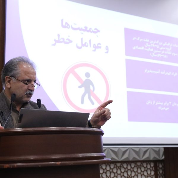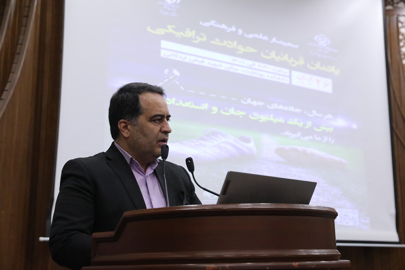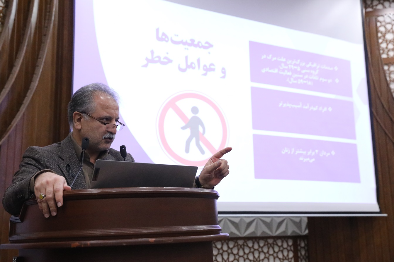 Dr. Ali Dehghani, as the Dean of the School of Public Health and Professor of Epidemiology, presented a global analysis of traffic accident statistics. He identified risk factors such as risky driving behaviors, poor-quality infrastructure, low vehicle safety, and weak law enforcement, stressing the need for effective interventions, continuous monitoring, and infrastructure improvements.